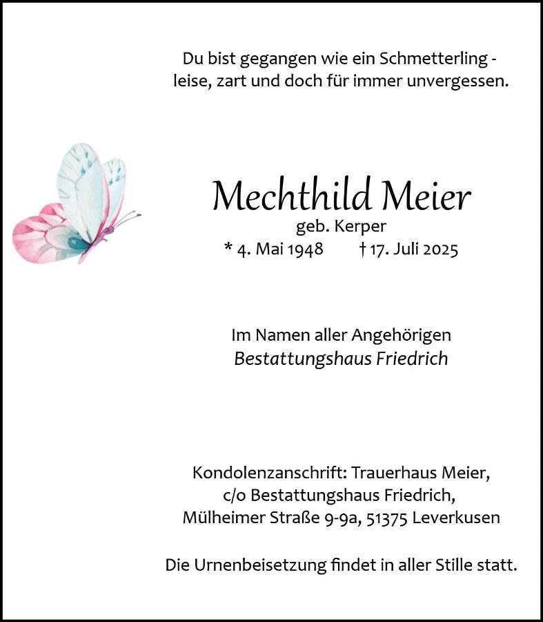 Mechthild Meiergestorben am 17. Juli 2025